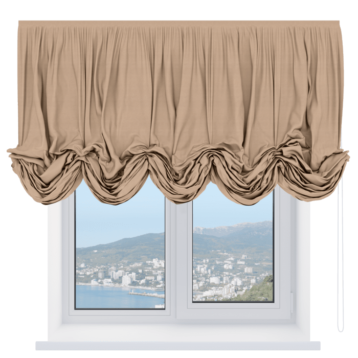 Австрийская штора лён кашемир коричневый, карниз верёвочный